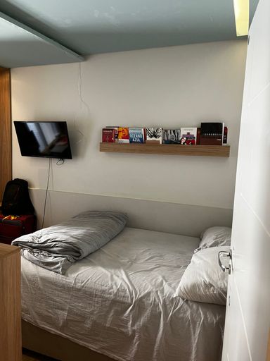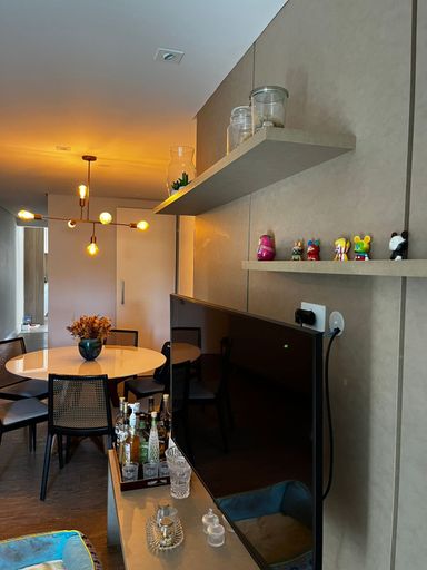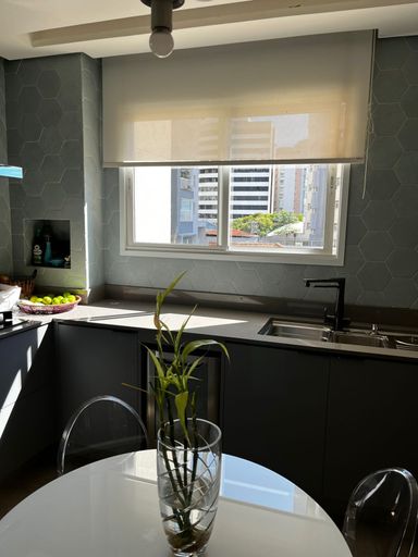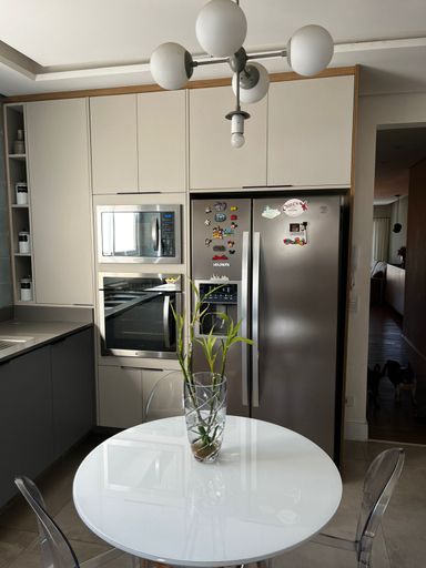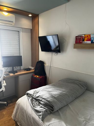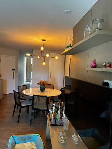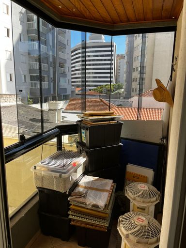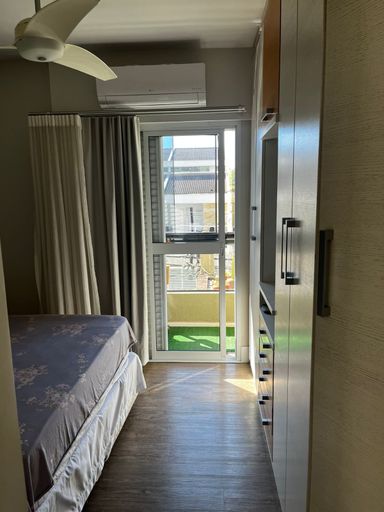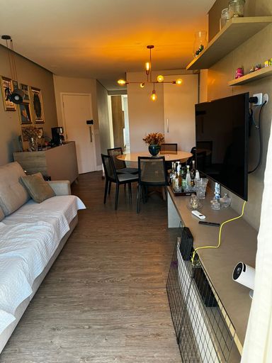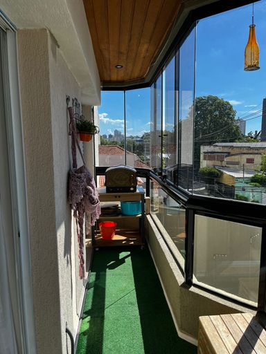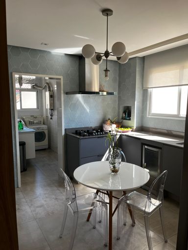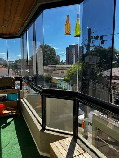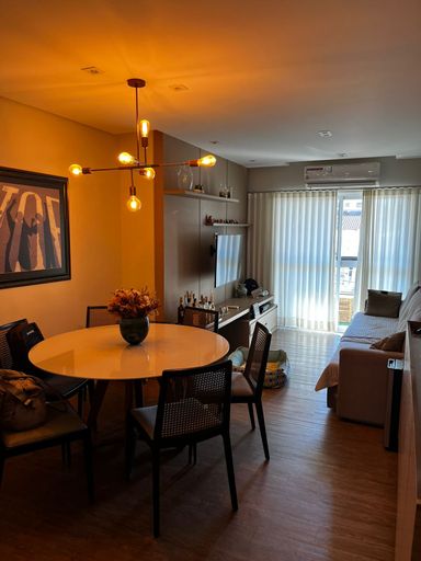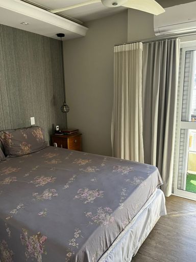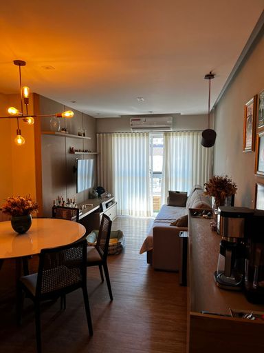 Lindo apartamento de 110m², 3 dormitórios, 3 banheiros, 1 suíte, 2 varandas fechadas com vidro, sala espaçosa e bem iluminada, cozinha com armários planejados, lavanderia, closet, ar condicionado em todos os cômodos, guarda roupas e estantes planejados e 2 vagas de garagem cobertas.