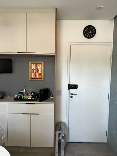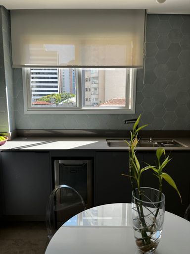 Condomínio de torre única, com salão de festas, churrasqueira, salão de jogos, academia e portaria eletrônica.