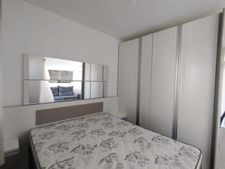 STUDIO - RUDGE RAMOS - SÃO BERNARDO DO CAMPO/SP. Apartamento Studio, 35,72m² com armários planejados, com sacada, bancada com 2 cadeiras, quarto com guarda roupa, cama box e colchão, sofá, cortina, espelho, banheiro com gabinete, box, chuveiro a gás, piso em porcelanato. 1 Vaga de garagem