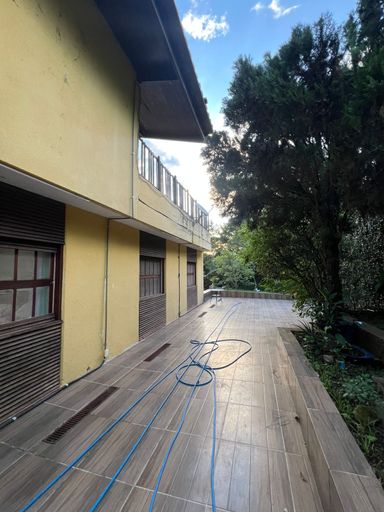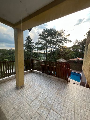 Pavimento Superior: 2 quartos, 1 banheiro, salão de festas ideal para celebrações e uma agradável sacada com vista.