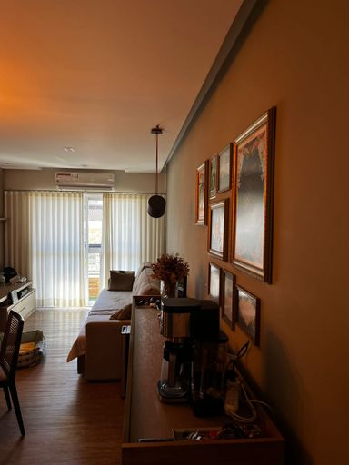 Apartamento padrão com 2 suites, lavabo e área de serviço arejada. Sala de TV e jantar integradas. Cozinha com armários. Possui 2 vagas de garagem. Prédio conta com churrasqueira e forno a lenha, quadra poliesportiva, piscina, academia, espaço gourmet, bicicletário, estacionamento para visitantes e coworking.