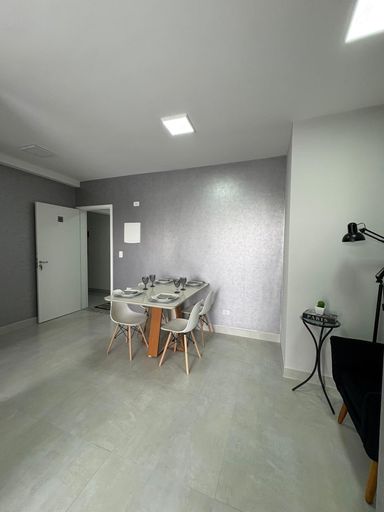 Apartamento padrão com 2 suites, lavabo e área de serviço arejada. Sala de TV e jantar integradas. Cozinha com armários. Possui 2 vagas de garagem. Prédio conta com churrasqueira e forno a lenha, quadra poliesportiva, piscina, academia, espaço gourmet, bicicletário, estacionamento para visitantes e coworking.