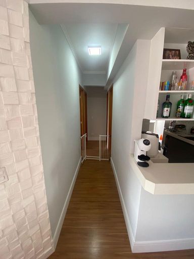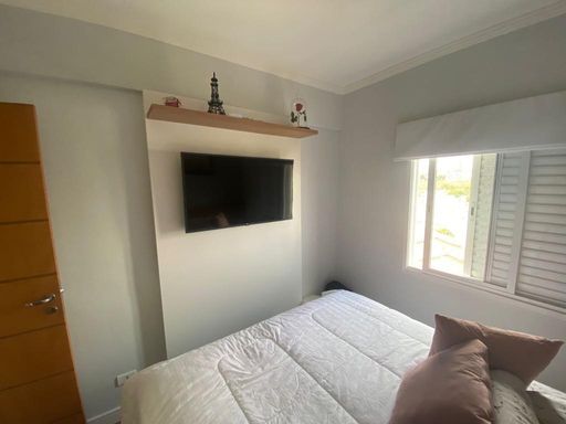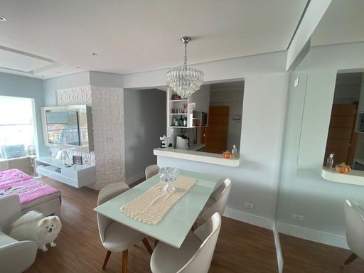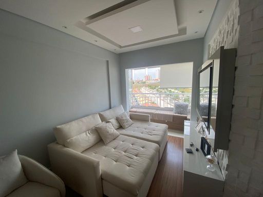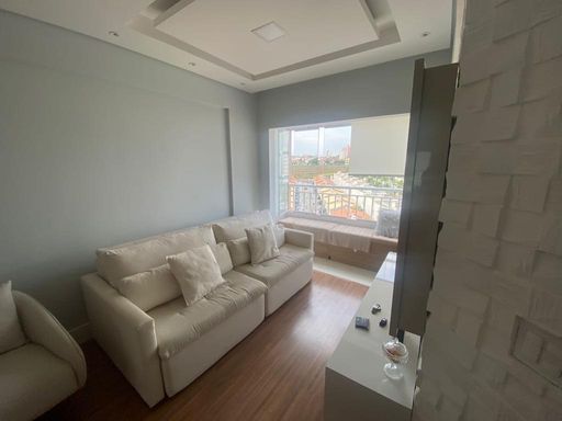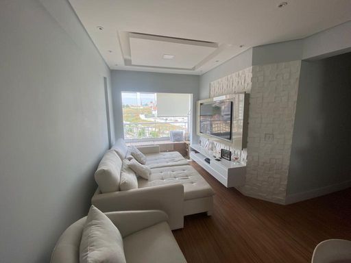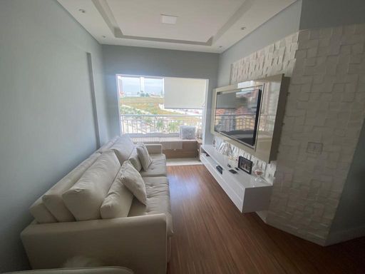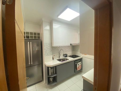 Lindo Apartamento com móvéis planejados, piso laminado, Cozinha americana possui coifa, cooktop, Sala com rack para TV , varanda, (sendo a mesma estendida para a belissima sala ) , Quarto equipado com painel para tv , 2° quarto possui um belo guarda roupa planejdo, Banheiro com blindex, chuveiro elétrico, espelho e armários. Área de Serviço, varal no teto já instalado. Vaga em garagem coberta. Agende a sua visita!